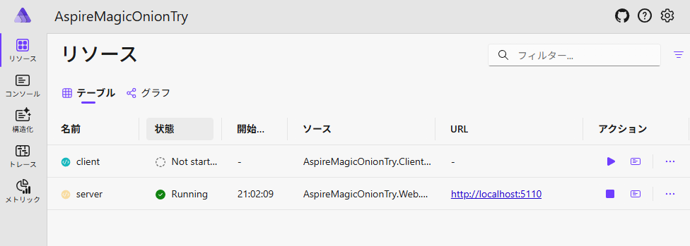 .AddProject<...>("server")の部分)と合わせる