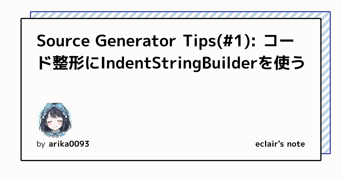 Source Generatorはコードを文字列として生成するため、コードの整形も自分でやる必要があります。
